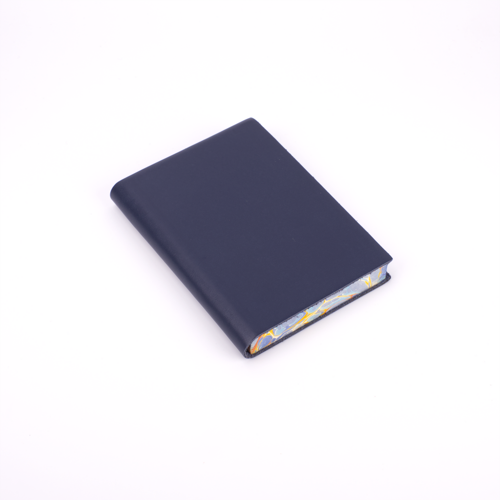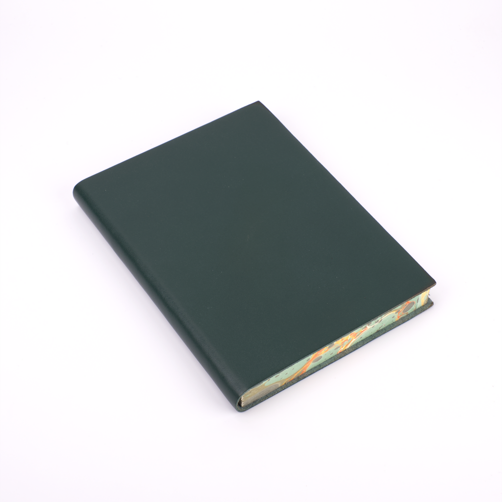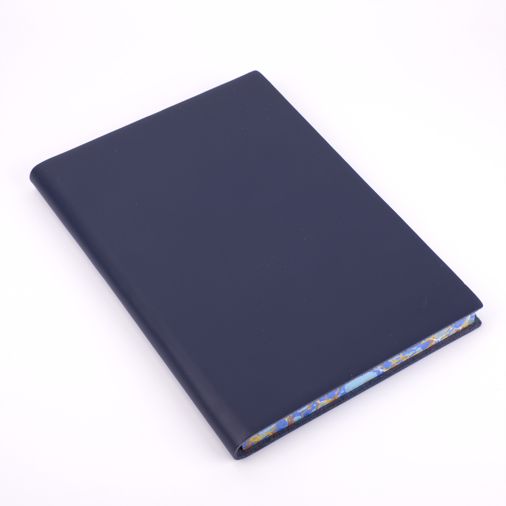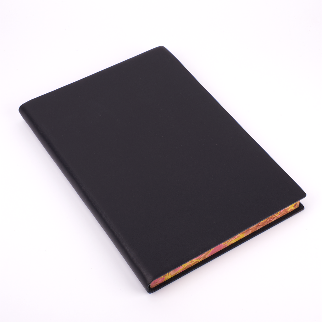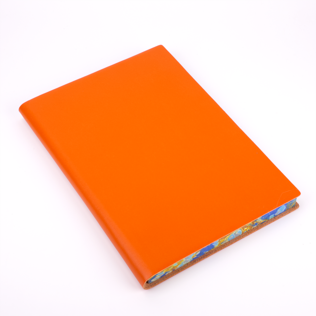 One of our newest creations with our artisan binders, this journal effortlessly combines the serious and the playful. The soft, flexible leather cover comes in plain black, red, blue, green, burgundy, and orange to maintain a traditional exterior to the journal. The edges of the pages, however, are expertly marbled to add a true vibrancy and beauty to the journal.