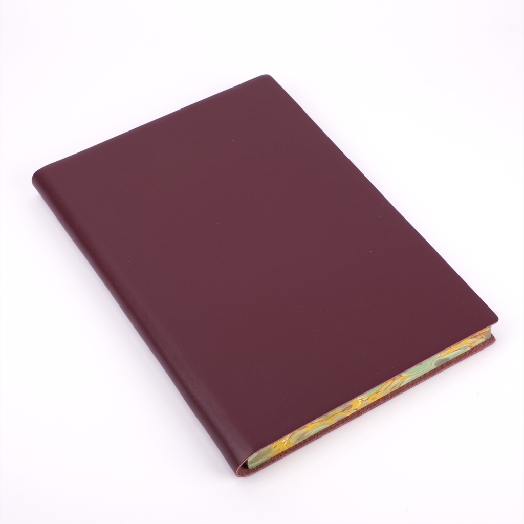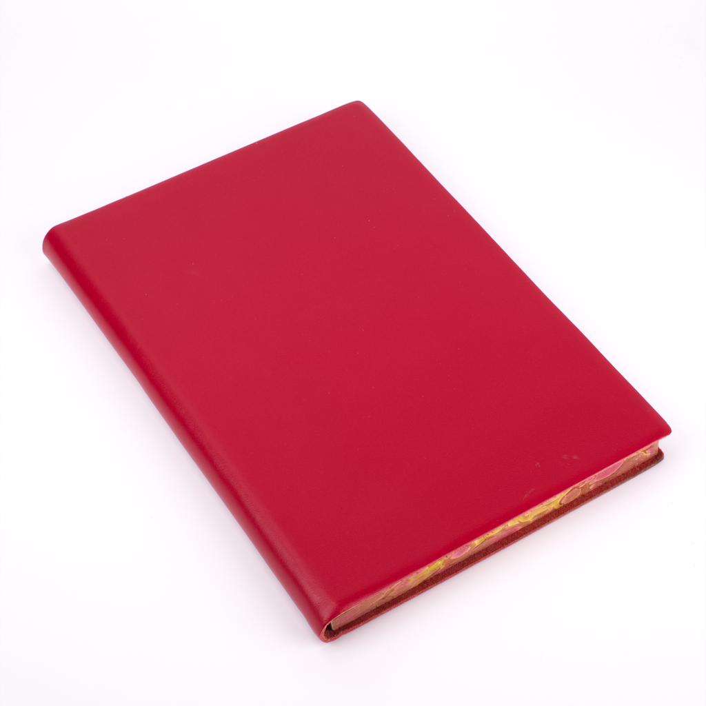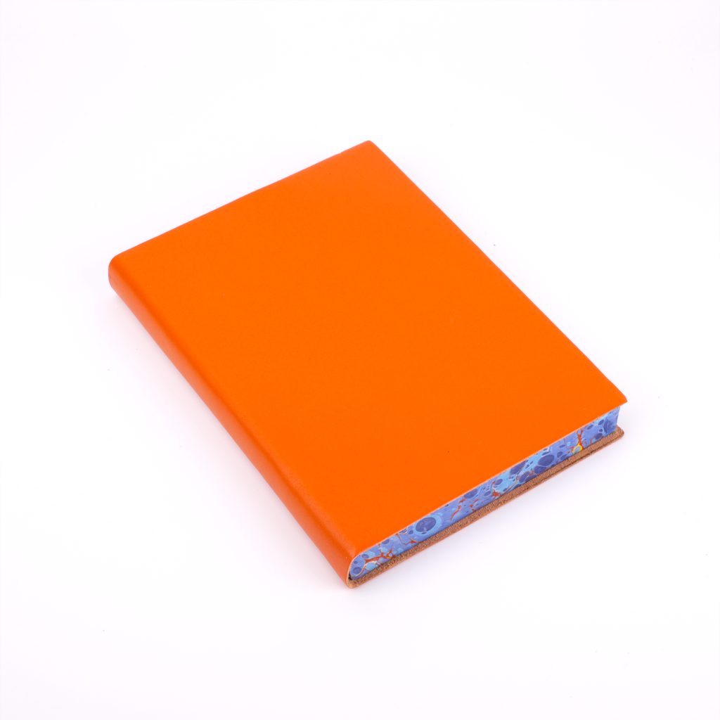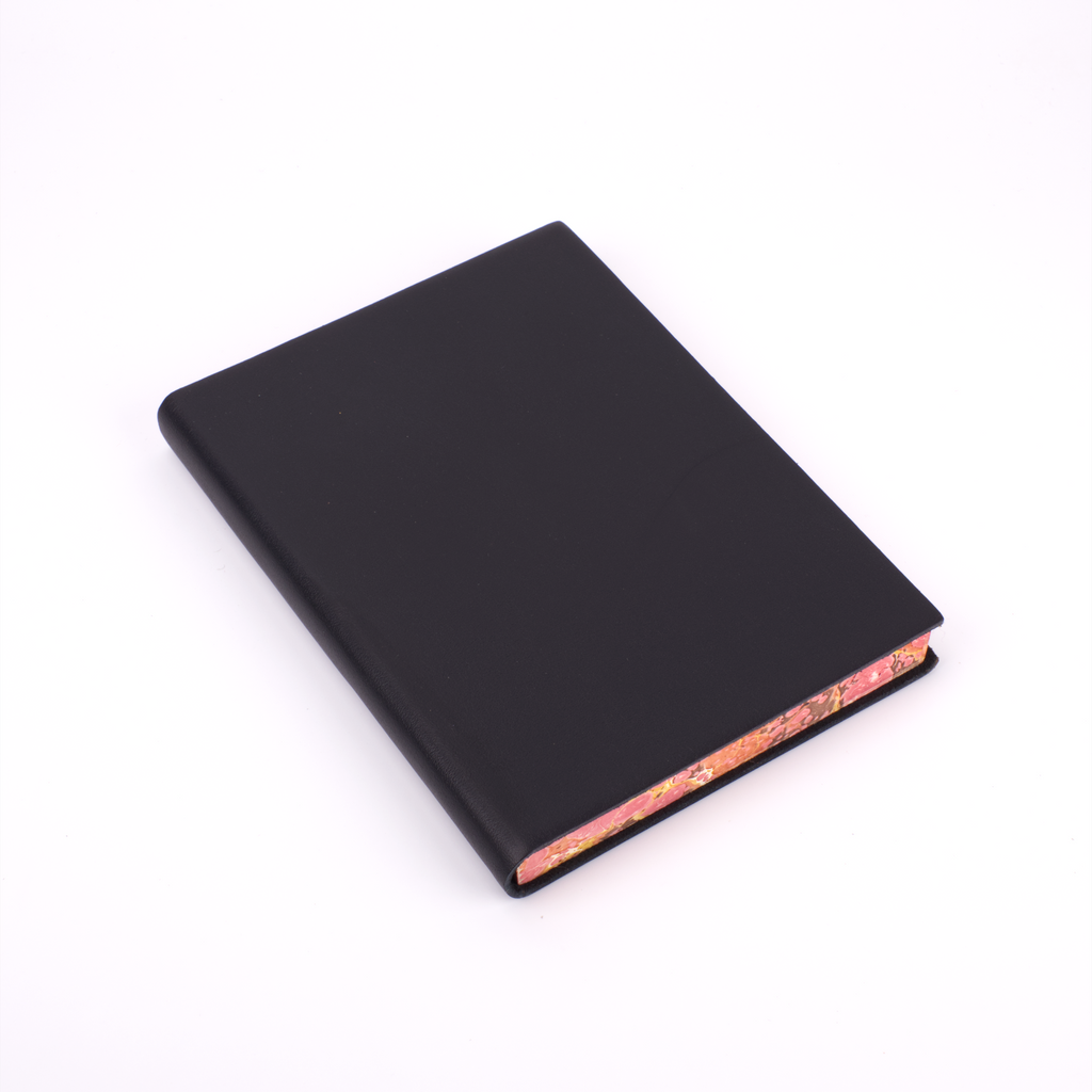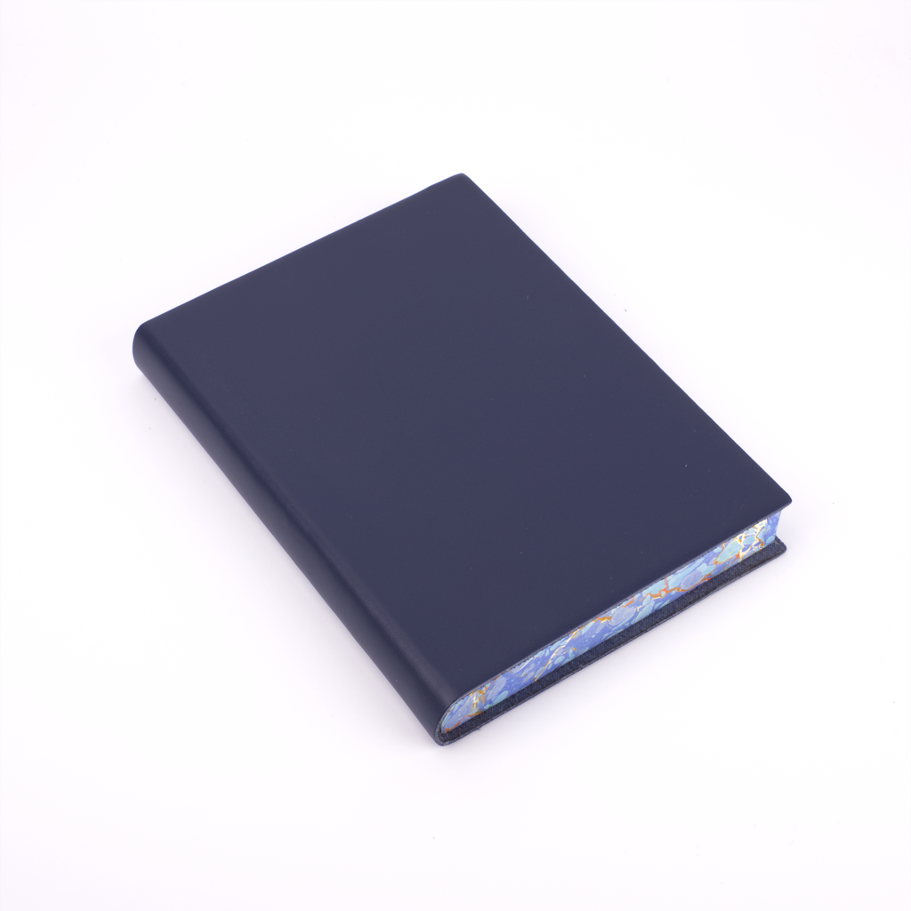 One of our newest creations with our artisan binders, this journal effortlessly combines the serious and the playful. The soft, flexible leather cover comes in plain black, red, blue, green, burgundy, and orange to maintain a traditional exterior to the journal. The edges of the pages, however, are expertly marbled to add a true vibrancy and beauty to the journal.