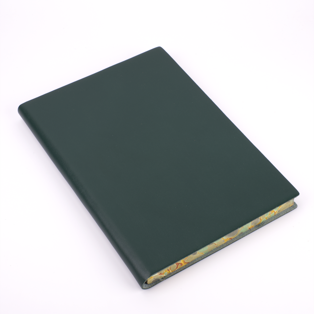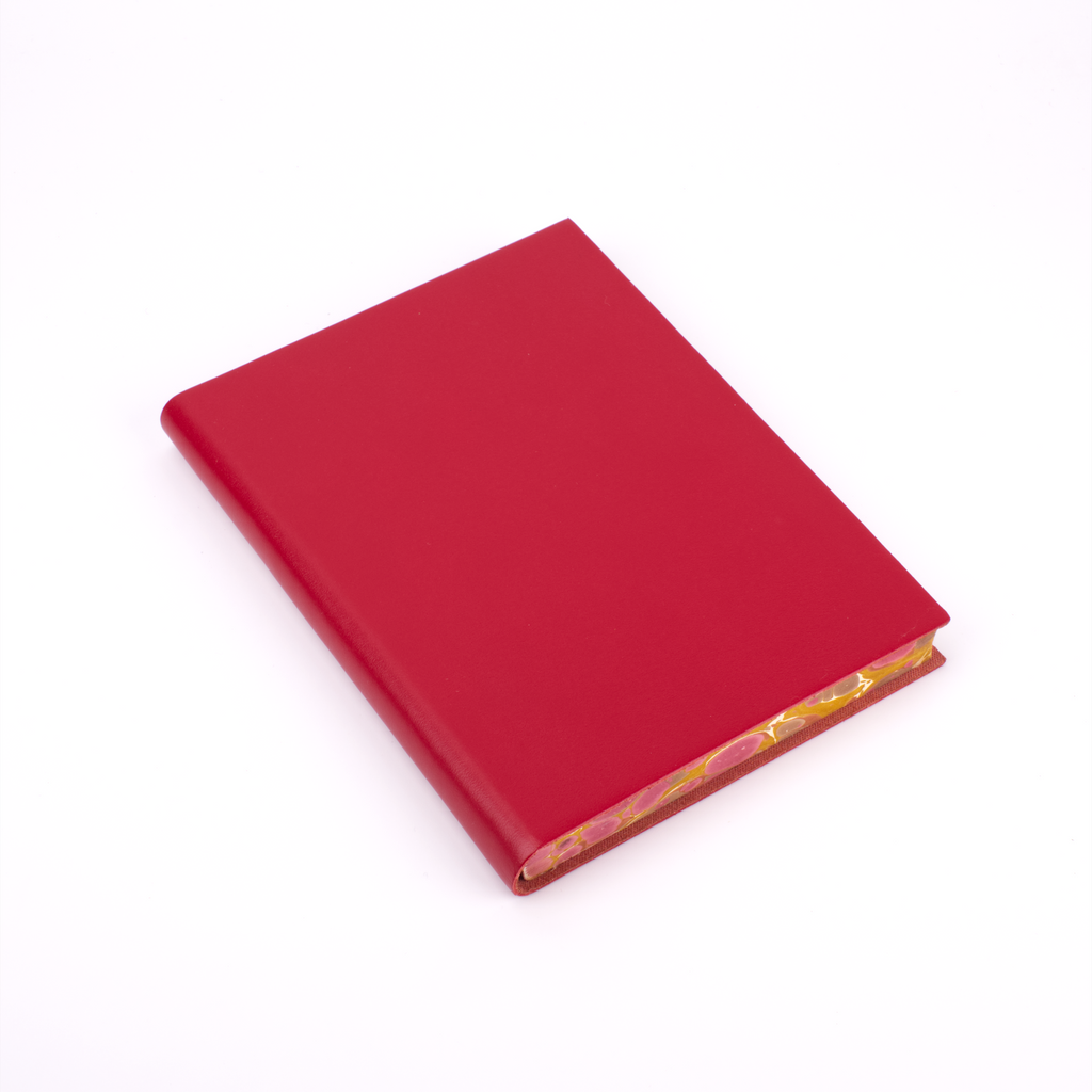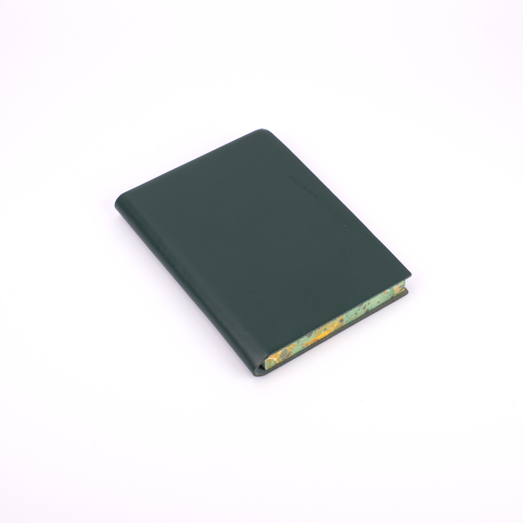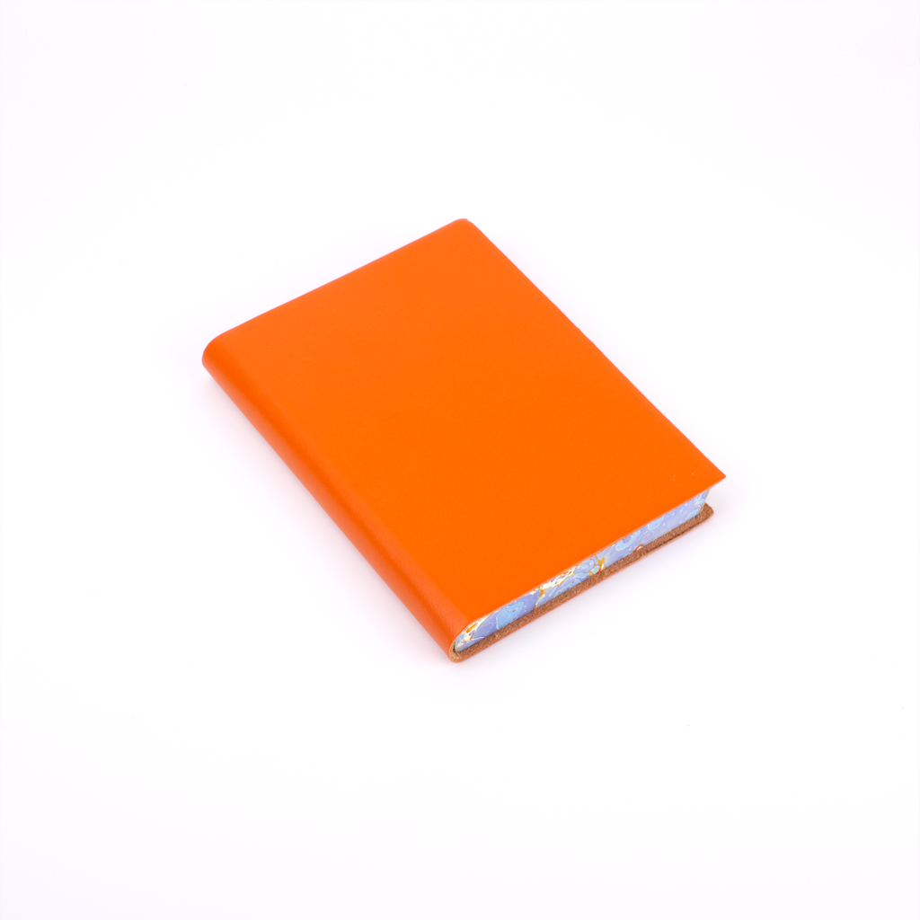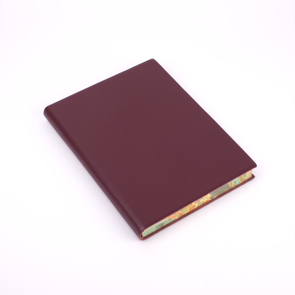 One of our newest creations with our artisan binders, this journal effortlessly combines the serious and the playful. The soft, flexible leather cover comes in plain black, red, blue, green, burgundy, and orange to maintain a traditional exterior to the journal. The edges of the pages, however, are expertly marbled to add a true vibrancy and beauty to the journal.