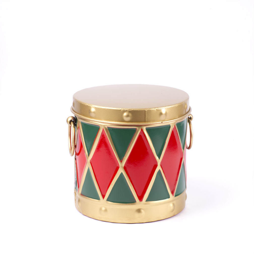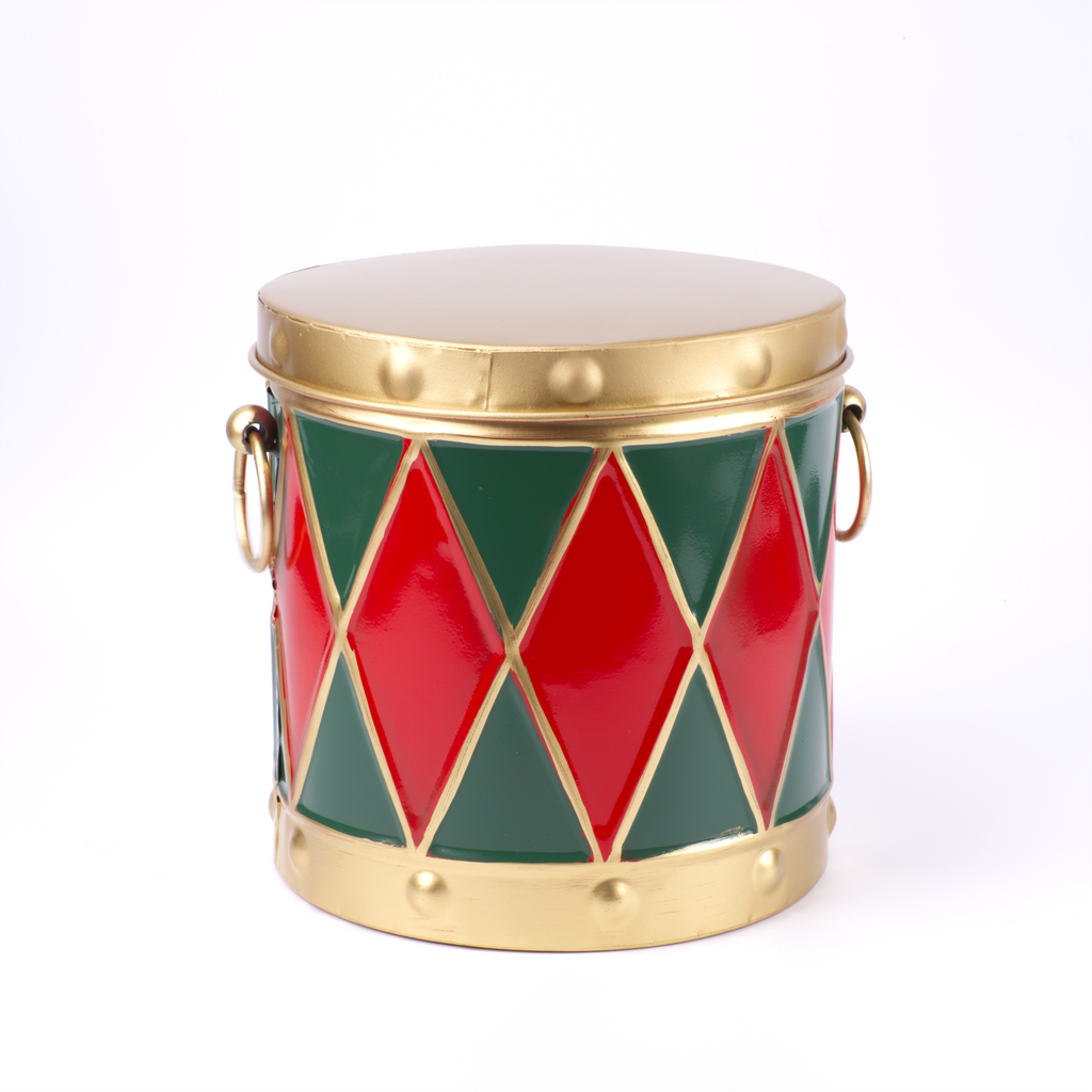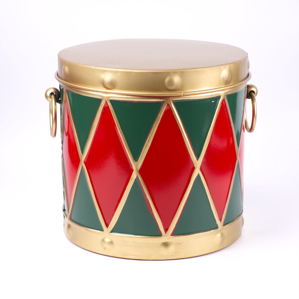 These handy festive drums are ideal for storing Christmas goodies. The inside of the tins are painted a smart red. They can be stacked, or the three sizes can be nested.