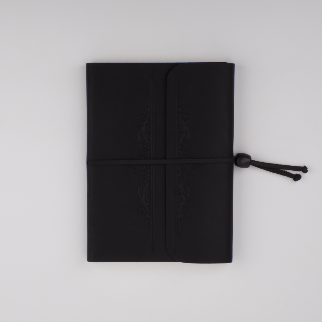 A stunning journal in Italian leather, with an enticingly embossed cover and beech wood toggle. The soft and flexible leather has a suede-like finish which is a pleasure to touch, and the wraparound cover protects the page edges, to keep the luxurious cream-coloured paper pristine.