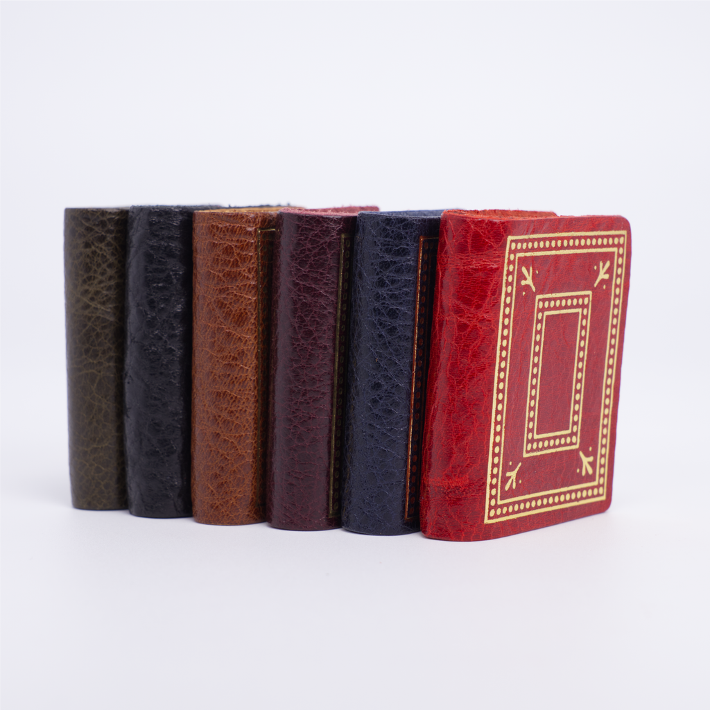 This is the most minuscule notebook that we have ever designed. Made from fine hardwearing leather embossed with a beautiful classic motif. Tiny enough to balance on the tip of your finger, it is the perfect vessel for your most secret confidences. Available in six colours with plain pages.