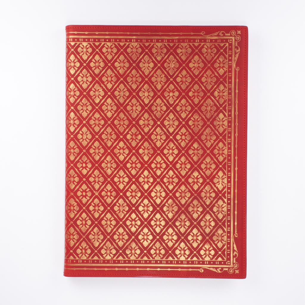 Calling to mind the classic elegance of Florence, our Naila Refillable Journal is embossed with a beautiful diamond floral pattern and golden gilding.