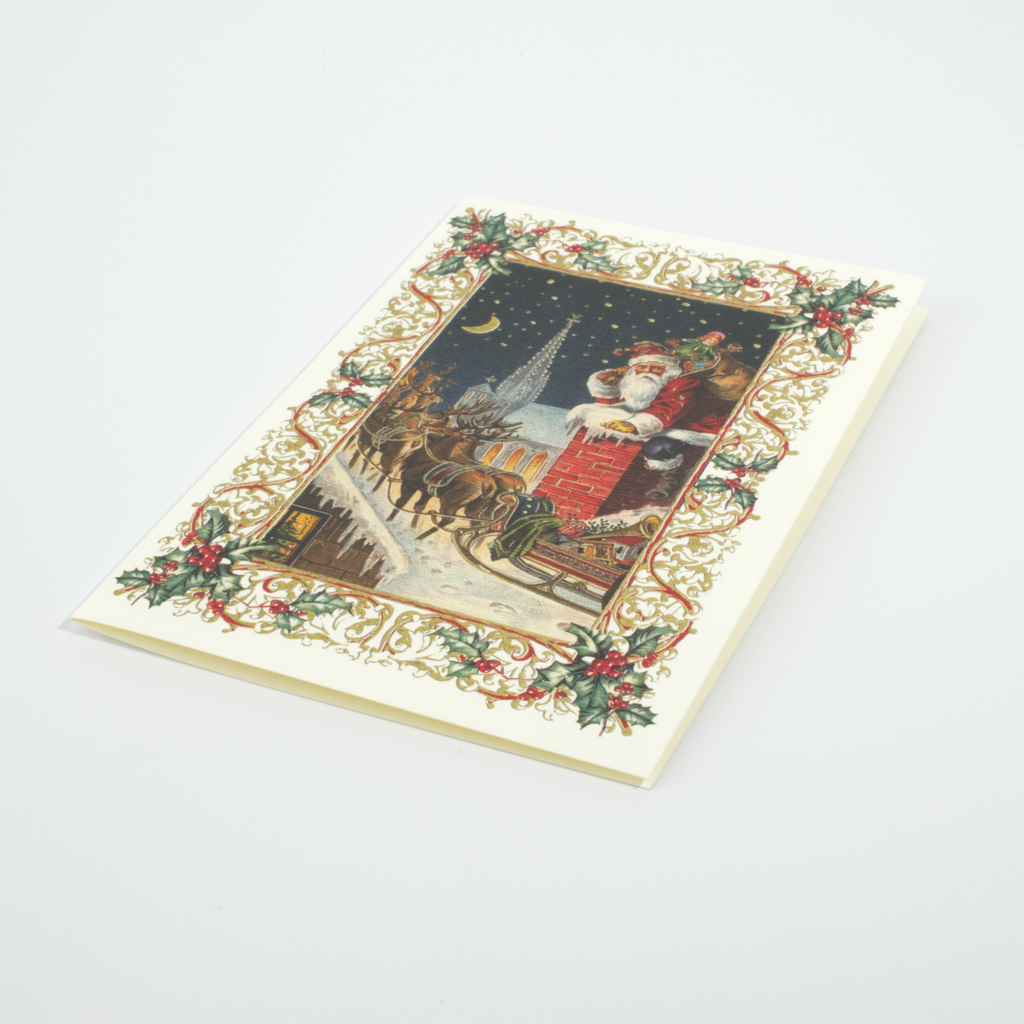 These beautiful Christmas cards are produced with first quality paper, enriched by multi-coloured embossed printings and with gold powder finishing.